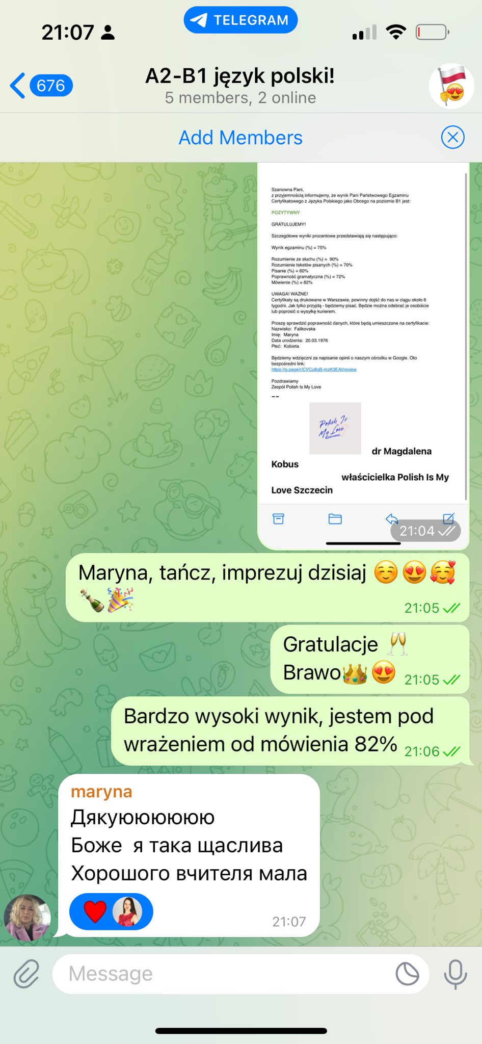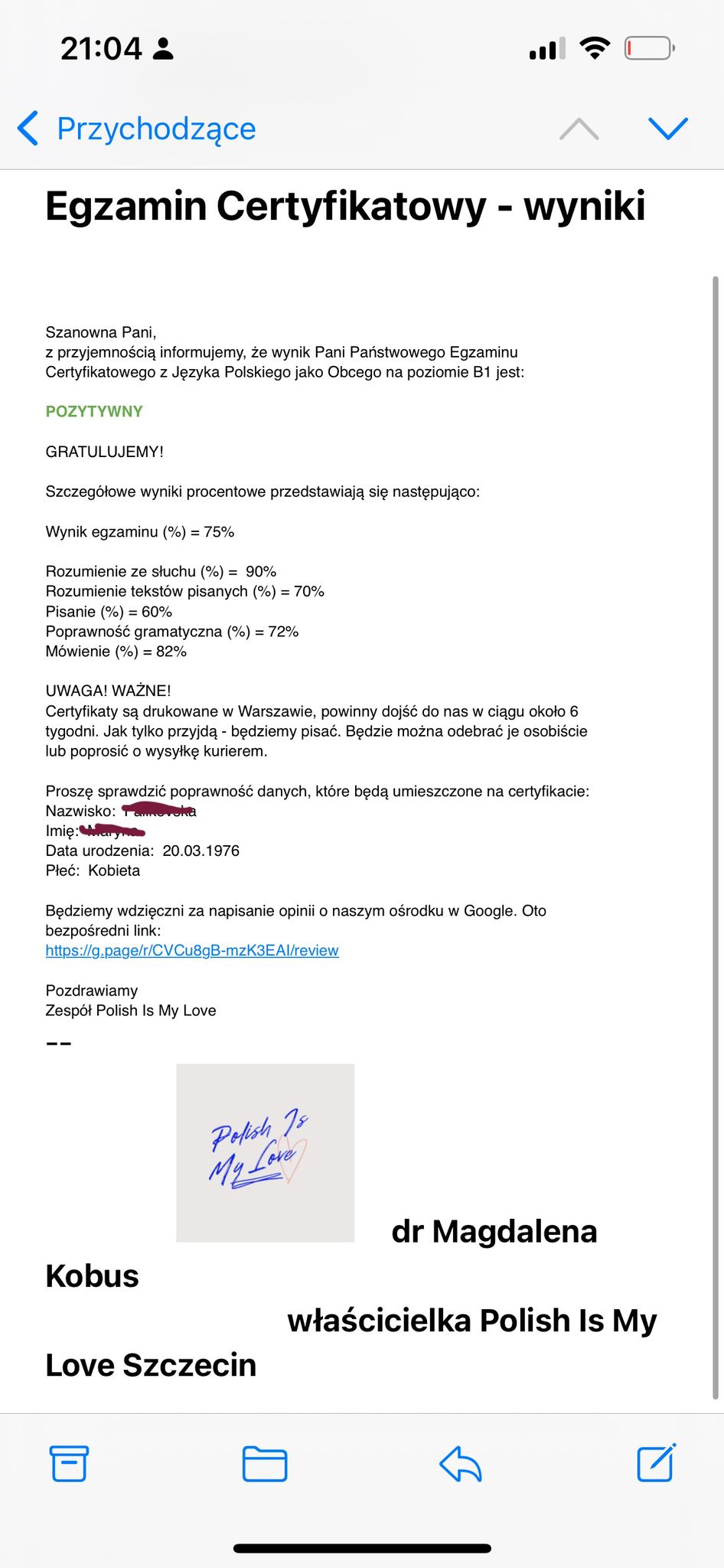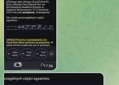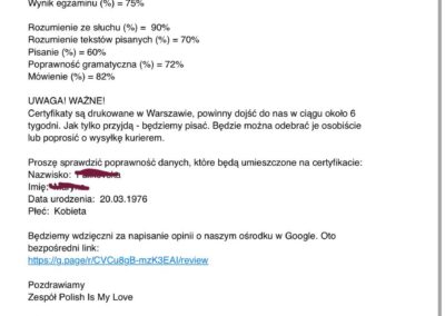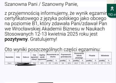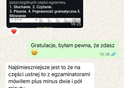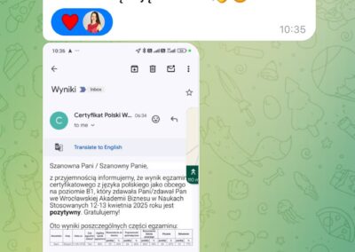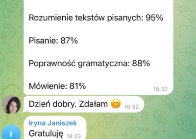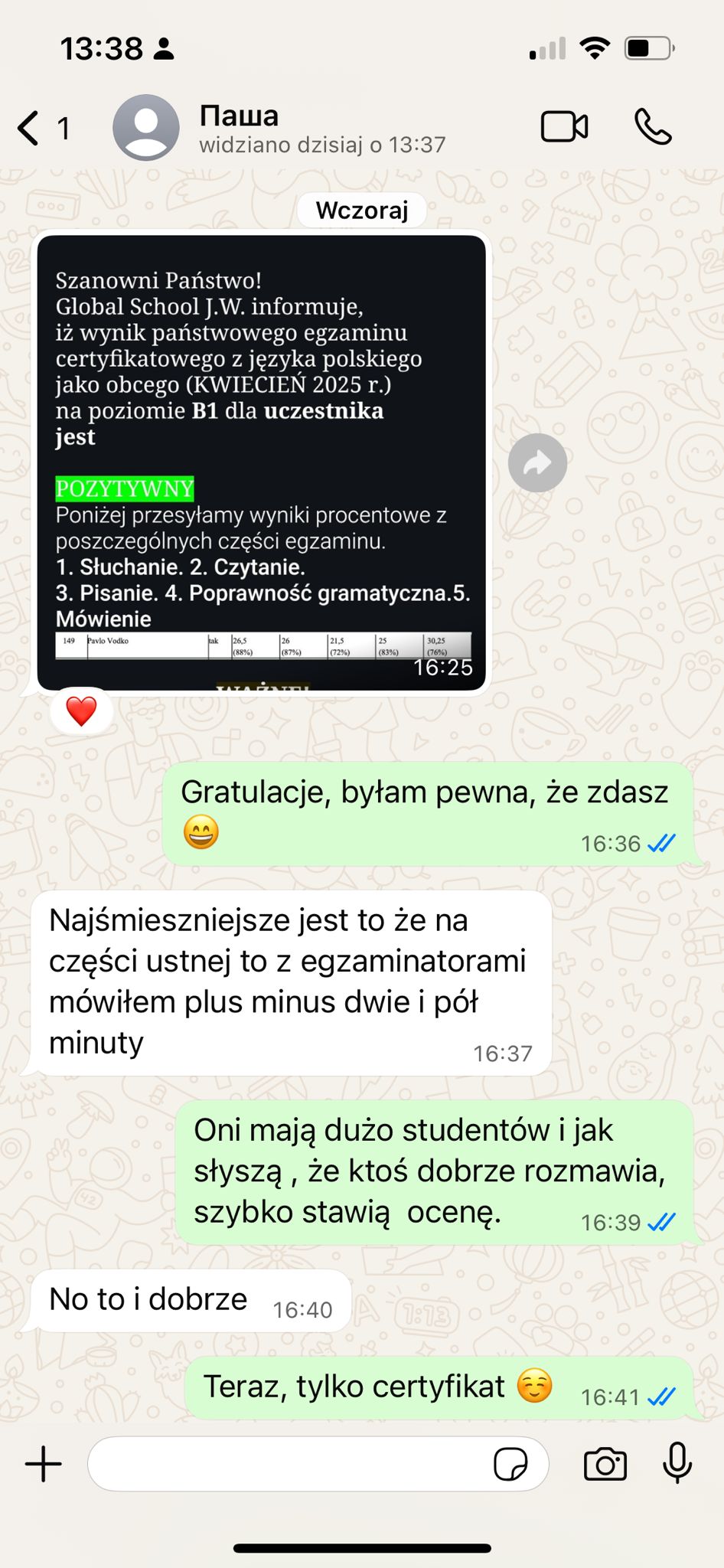 Mamy wieloletnie doświadczenie w przygotowywaniu do egzaminów. Setki zadowolonych studentów zostawiły nam pozytywne opinie, a nasi uczniowie zdają egzaminy pozytywnie! Znamy strukturę egzaminu i wiemy, jak pomóc Ci osiągnąć sukces. Ćwiczymy wszystkie części: mówienie, pisanie, rozumienie i gramatykę w praktyce. U nas nauczysz się nie tylko, jak zdać egzamin, ale też jak mówić po polsku naturalnie i z pewnością siebie.Zapisz się na kurs przygotowujący do egzaminu i przekonaj się, że sukces jest w zasięgu ręki!
