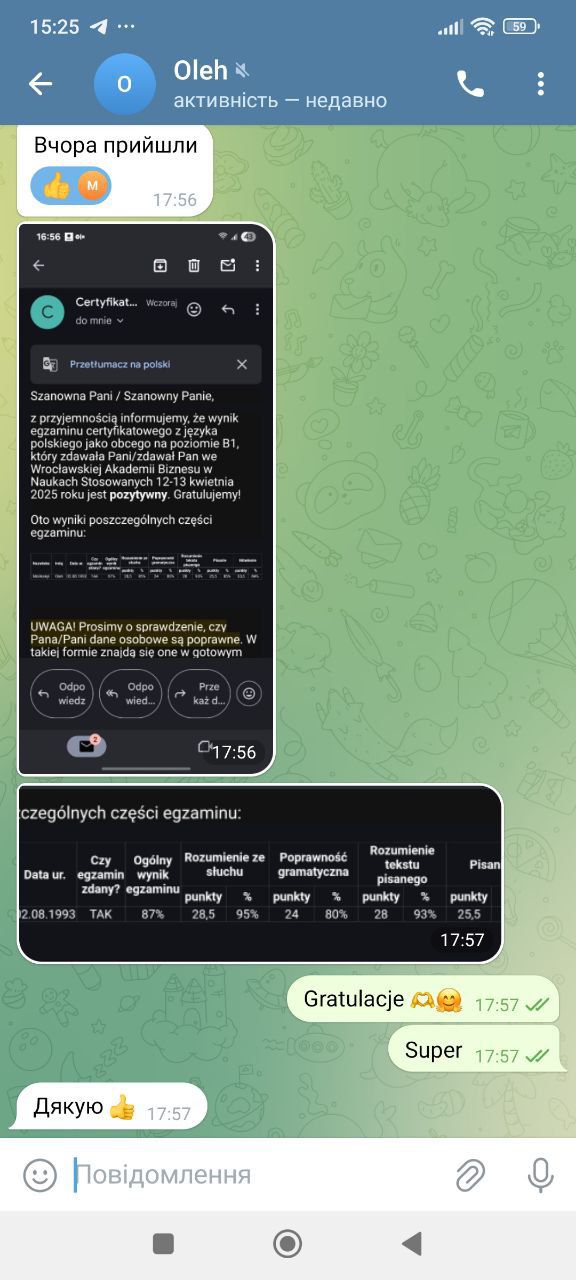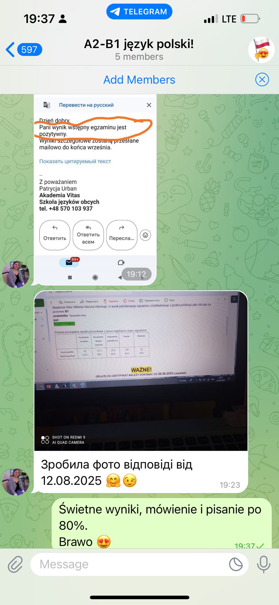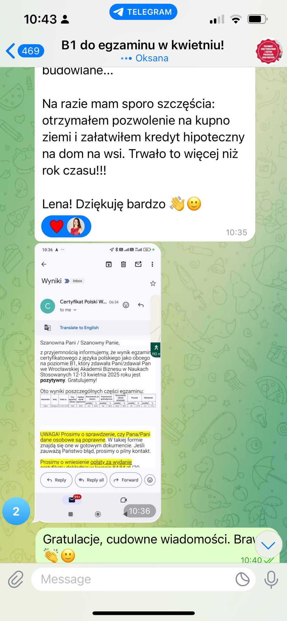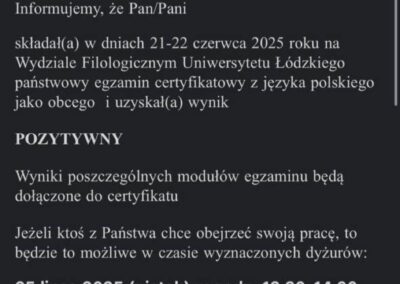 Mamy wieloletnie doświadczenie w przygotowywaniu do egzaminów. Setki zadowolonych studentów zostawiły nam pozytywne opinie, a nasi uczniowie zdają egzaminy pozytywnie! Znamy strukturę egzaminu i wiemy, jak pomóc Ci osiągnąć sukces. Ćwiczymy wszystkie części: mówienie, pisanie, rozumienie i gramatykę w praktyce. U nas nauczysz się nie tylko, jak zdać egzamin, ale też jak mówić po polsku naturalnie i z pewnością siebie.Zapisz się na kurs przygotowujący do egzaminu i przekonaj się, że sukces jest w zasięgu ręki!